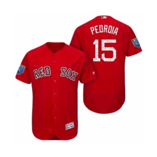 Men Scarlet Boston Red Sox #15 Dustin Pedroia 2018 Spring Training Flex Base Jersey