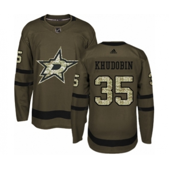 Men's Adidas Dallas Stars #35 Anton Khudobin Authentic Green Salute to Service NHL Jersey