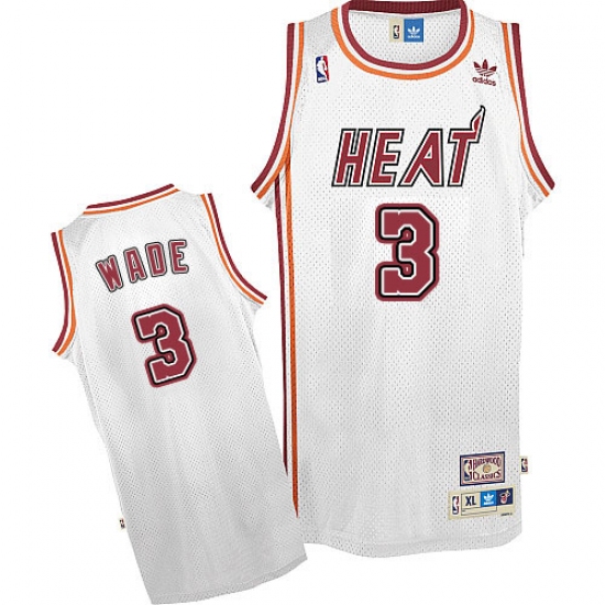Men's Adidas Miami Heat #3 Dwyane Wade Authentic White Throwback NBA Jersey
