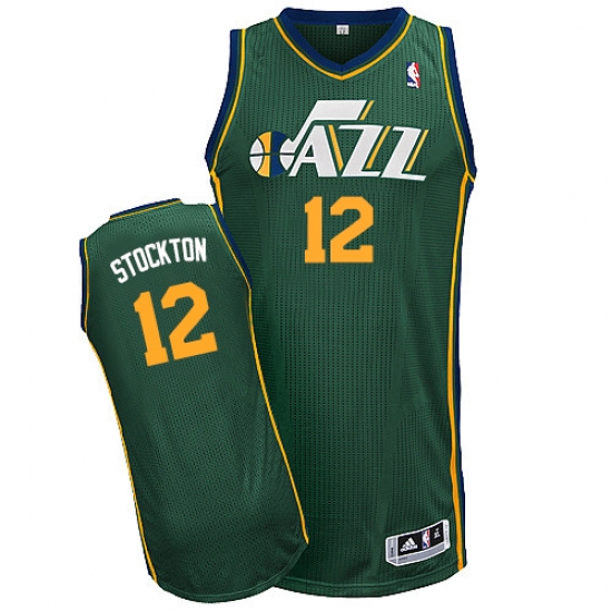 Men's Adidas Utah Jazz #12 John Stockton Authentic Green Alternate NBA Jersey