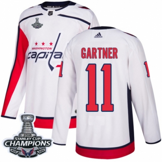 Men's Adidas Washington Capitals #11 Mike Gartner Authentic White Away 2018 Stanley Cup Final Champions NHL Jersey