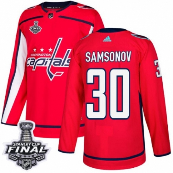 Men's Adidas Washington Capitals #30 Ilya Samsonov Premier Red Home 2018 Stanley Cup Final NHL Jersey