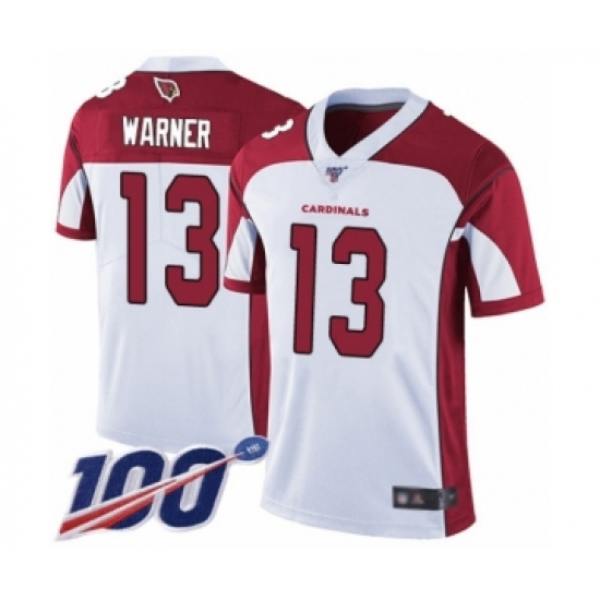 Men's Arizona Cardinals #13 Kurt Warner White Vapor Untouchable Limited Player 100th Season Football Jersey