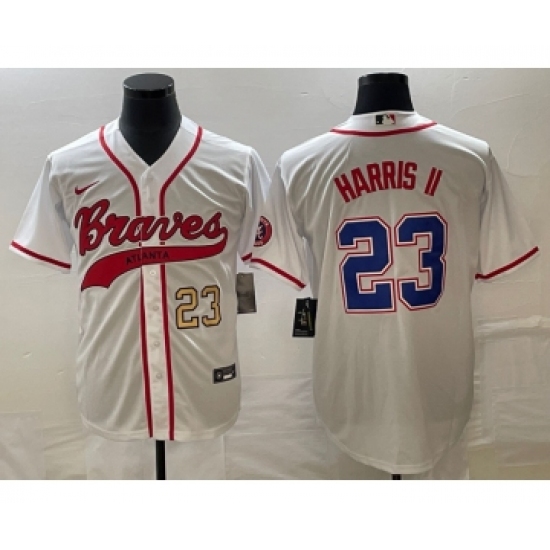 Men's Atlanta Braves #23 Michael Harris II Number White Cool Base Stitched Baseball Jersey
