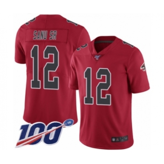>Men's Atlanta Falcons #12 Mohamed Sanu Limited Red Rush Vapor Untouchable 100th Season Football Jersey