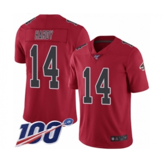 Men's Atlanta Falcons #14 Justin Hardy Limited Red Rush Vapor Untouchable 100th Season Football Jersey