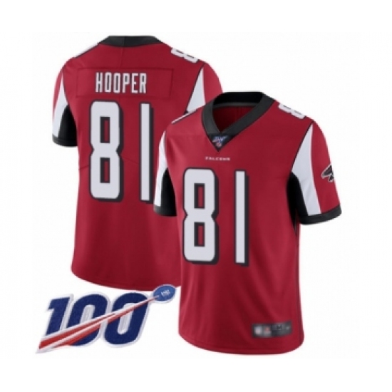 >Men's Atlanta Falcons #81 Austin Hooper Red Team Color Vapor Untouchable Limited Player 100th Season Football Jersey