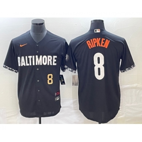 Men's Baltimore Orioles #8 Cal Ripken Jr Number Black 2023 City Connect Cool Base Stitched Jersey 2