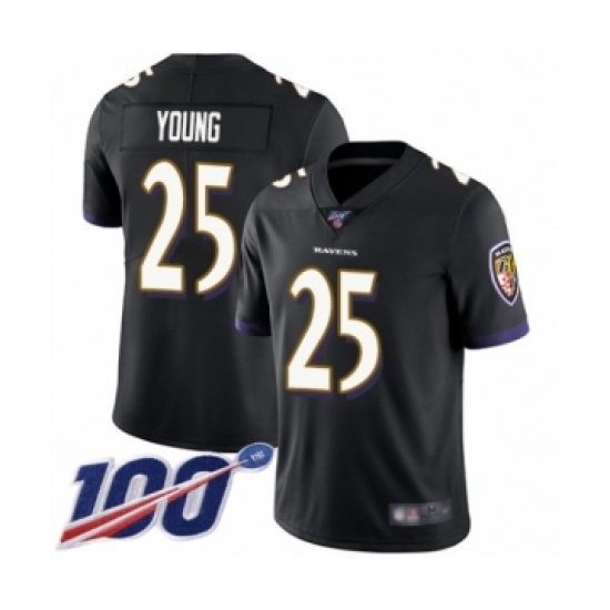 Men's Baltimore Ravens #25 Tavon Young Black Alternate Vapor Untouchable Limited Player 100th Season Football Jersey