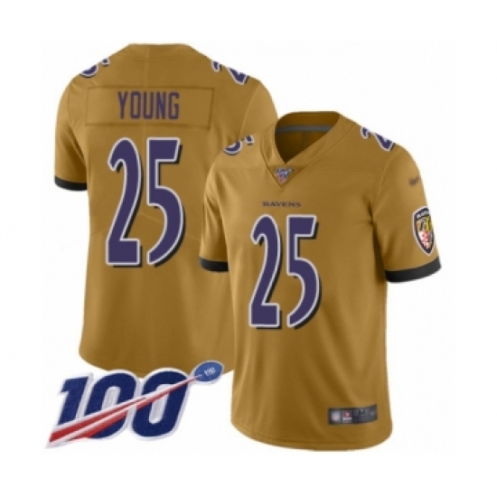 Men's Baltimore Ravens #25 Tavon Young Limited Gold Inverted Legend 100th Season Football Jersey