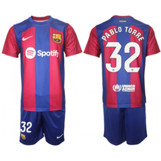 Men's Barcelona #32 Pablo Torre Blue Red 2023-24 Home Soccer Jersey