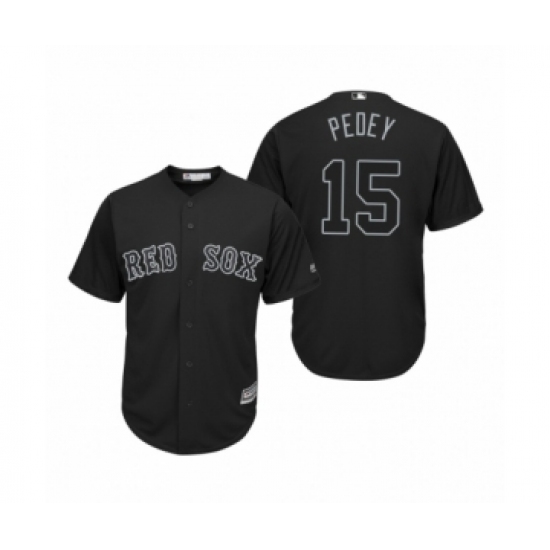 >Men's Boston Red Sox #15 Dustin Pedroia Pedey Black 2019 Players Weekend Replica Jersey