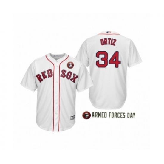 >Men's Boston Red Sox 2019 Armed Forces Day #34 David Ortiz White Jersey