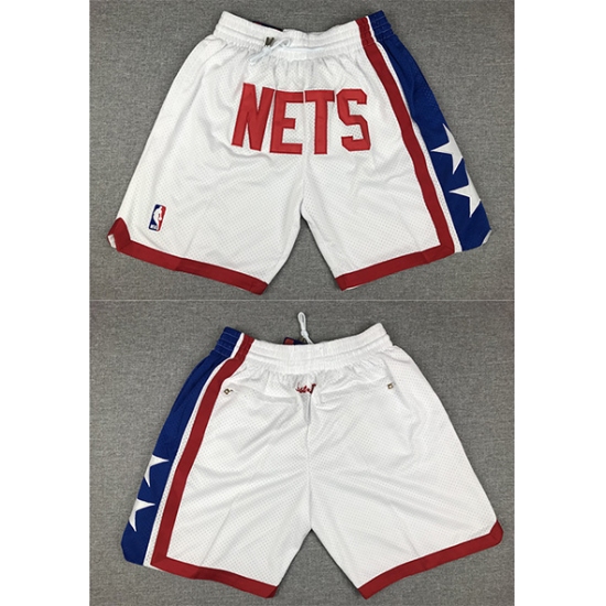 >Men's Brooklyn Nets Retro White Shorts (Run Smaller)