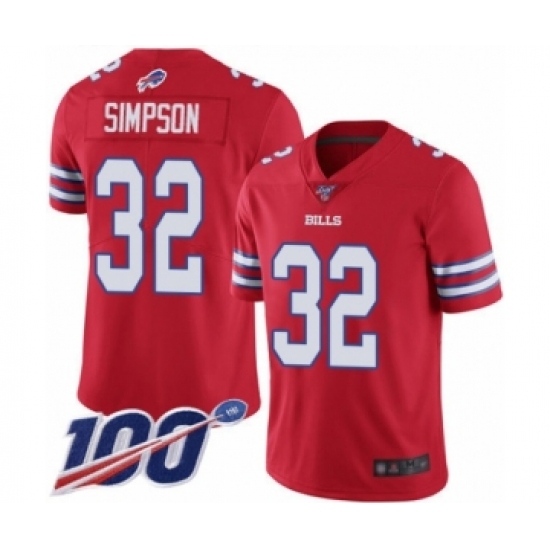 >Men's Buffalo Bills #32 O. J. Simpson Limited Red Rush Vapor Untouchable 100th Season Football Jersey