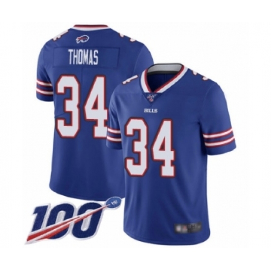 >Men's Buffalo Bills #34 Thurman Thomas Royal Blue Team Color Vapor Untouchable Limited Player 100th Season Football Jersey