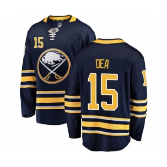 >Men's Buffalo Sabres #15 Jean-Sebastien Dea Fanatics Branded Navy Blue Home Breakaway Hockey Jersey