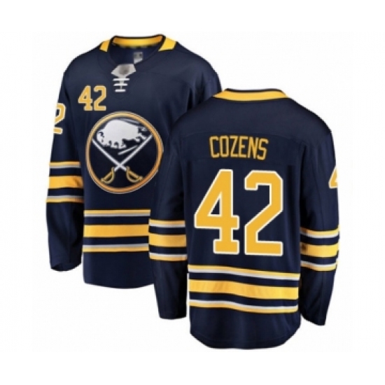 >Men's Buffalo Sabres #42 Dylan Cozens Fanatics Branded Navy Blue Home Breakaway Hockey Jersey