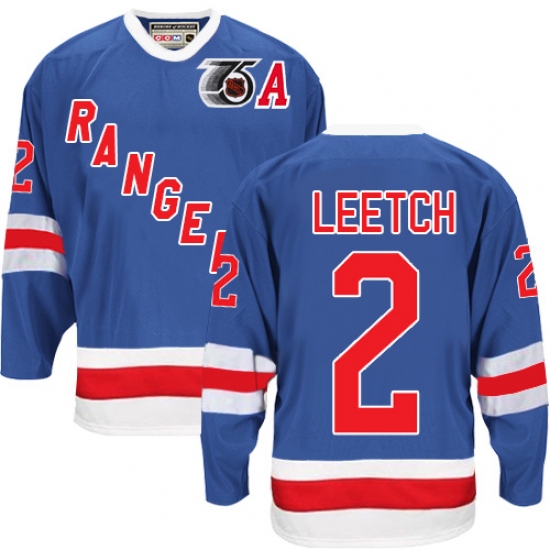 Men's CCM New York Rangers #2 Brian Leetch Authentic Royal Blue 75TH Throwback NHL Jersey
