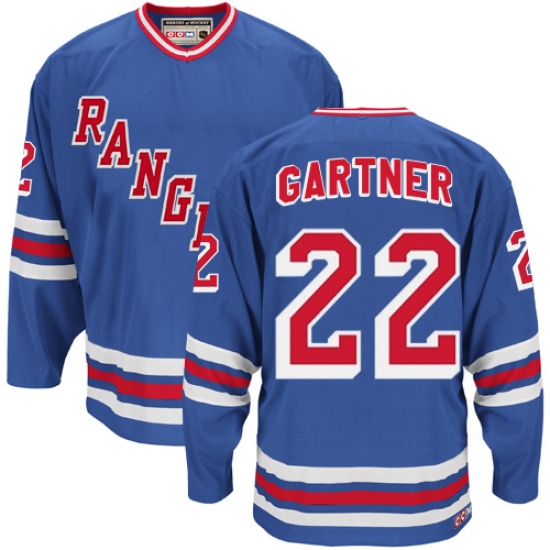 Men's CCM New York Rangers #22 Mike Gartner Authentic Royal Blue Throwback NHL Jersey