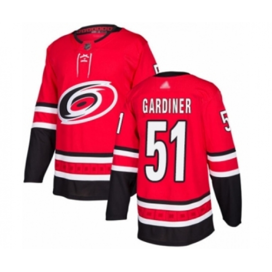 >Men's Carolina Hurricanes #51 Jake Gardiner Authentic Red Home Hockey Jersey