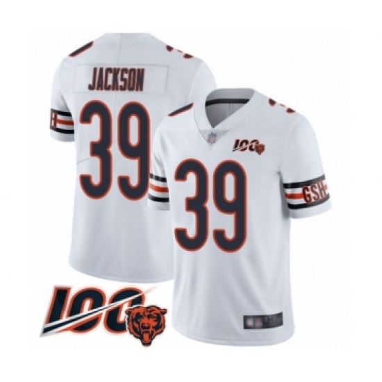 >Men's Chicago Bears #39 Eddie Jackson White Vapor Untouchable Limited Player 100th Season Football Jersey