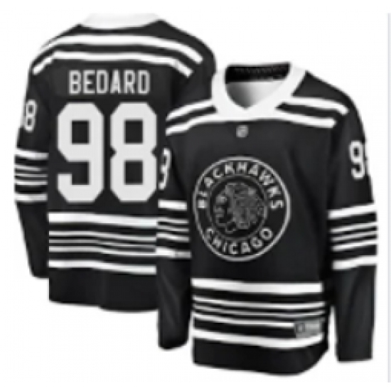 >Men's Chicago Blackhawks #98 Connor Bedard Adidas Authentic 2019 Winter Classic Black Jersey