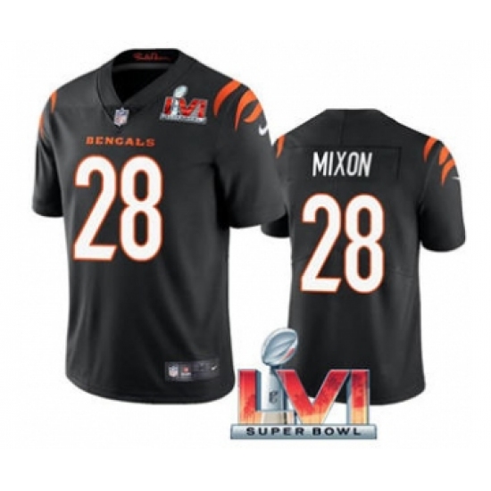 Men's Cincinnati Bengals #28 Joe Mixon Black 2022 Super Bowl LVI Vapor Limited Stitched Jersey