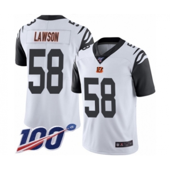 >Men's Cincinnati Bengals #58 Carl Lawson Limited White Rush Vapor Untouchable 100th Season Football Jersey
