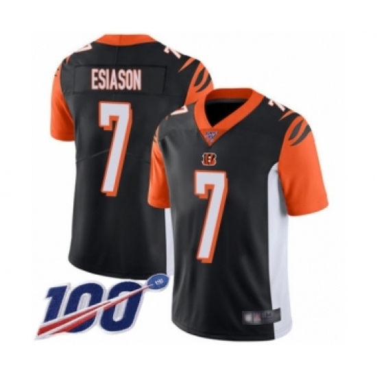 >Men's Cincinnati Bengals #7 Boomer Esiason Black Team Color Vapor Untouchable Limited Player 100th Season Football Jersey