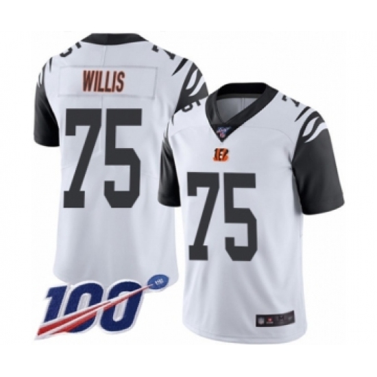 >Men's Cincinnati Bengals #75 Jordan Willis Limited White Rush Vapor Untouchable 100th Season Football Jersey