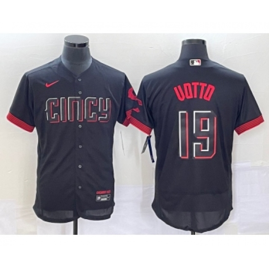 Men's Cincinnati Reds #19 Joey Votto Black 2023 City Connect Flex Base Stitched Jersey 1