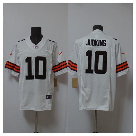 Men's Cleveland Browns #10 Quinshon Judkins White 2025 Draft F.U.S.E. Vapor Limited Football Stitched Jersey