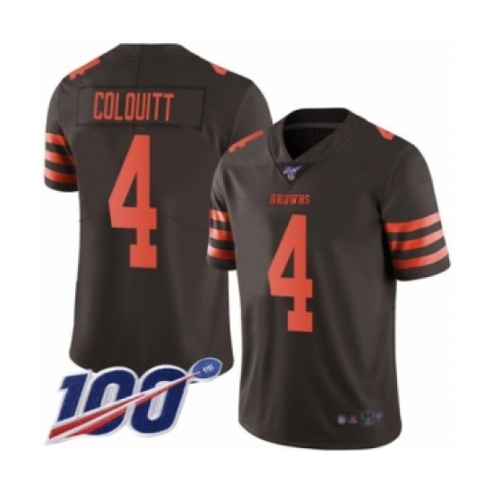 Men's Cleveland Browns #4 Britton Colquitt Limited Brown Rush Vapor Untouchable 100th Season Football Jersey