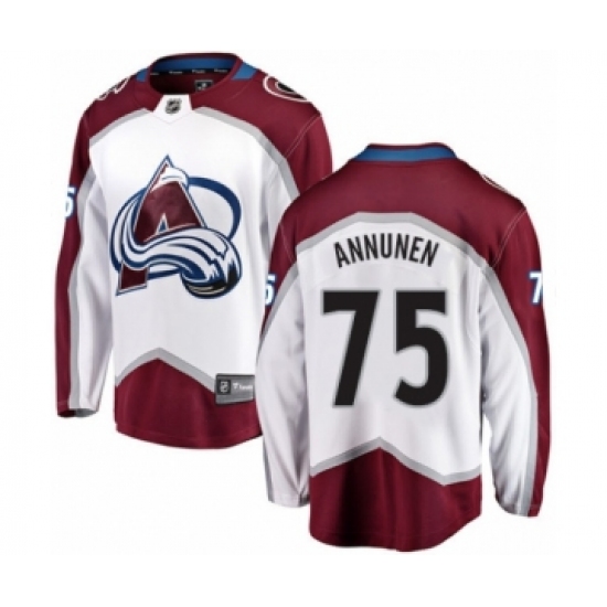 Men's Colorado Avalanche #75 Justus Annunen Authentic White Away Fanatics Branded Breakaway NHL Jersey