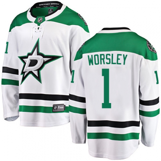 Men's Dallas Stars #1 Gump Worsley Fanatics Branded White Away Breakaway NHL Jersey