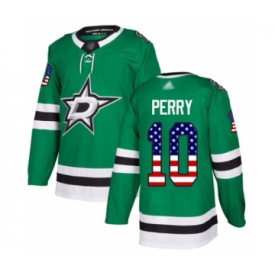 >Men's Dallas Stars #10 Corey Perry Authentic Green USA Flag Fashion Hockey Jersey