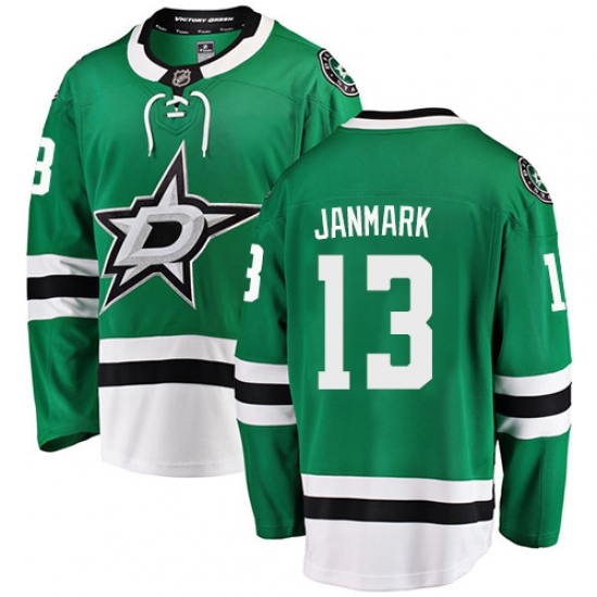 Home>NHL>Dallas Stars>Mattias Janmark>Men's Dallas Stars #13 Mattias Janmark Fanatics Branded Green Home Breakaway NHL Jersey
