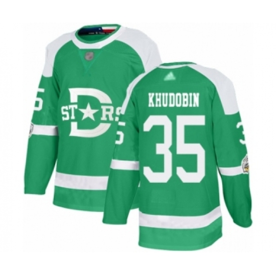 Men's Dallas Stars #35 Anton Khudobin Authentic Green 2020 Winter Classic Hockey Jersey