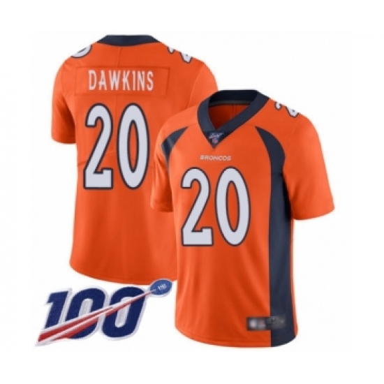 >Men's Denver Broncos #20 Brian Dawkins Orange Team Color Vapor Untouchable Limited Player 100th Season Football Jersey