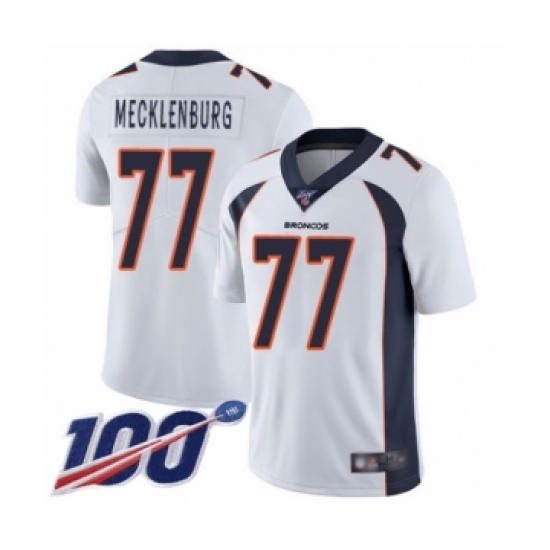 >Men's Denver Broncos #77 Karl Mecklenburg White Vapor Untouchable Limited Player 100th Season Football Jersey