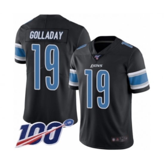 >Men's Detroit Lions #19 Kenny Golladay Limited Black Rush Vapor Untouchable 100th Season Football Jersey