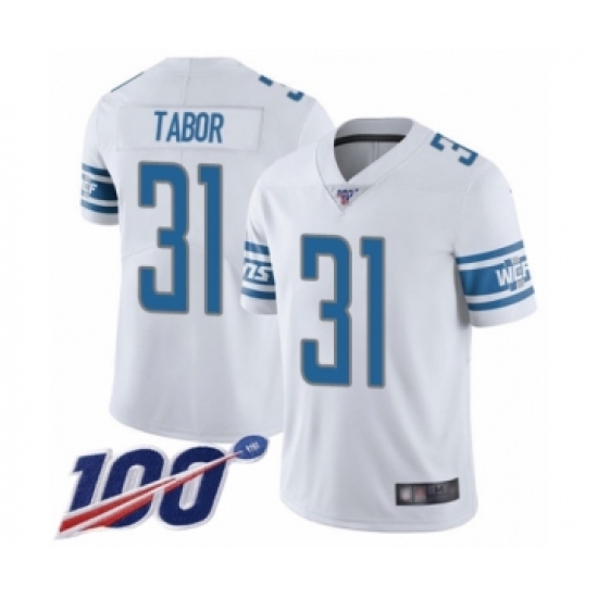>Men's Detroit Lions #31 Teez Tabor White Vapor Untouchable Limited Player 100th Season Football Jersey