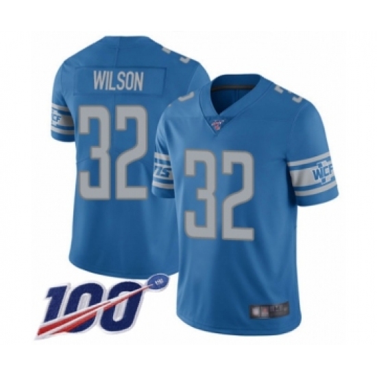 >Men's Detroit Lions #32 Tavon Wilson Blue Team Color Vapor Untouchable Limited Player 100th Season Football Jersey