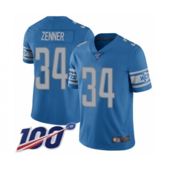 Men's Detroit Lions #34 Zach Zenner Blue Team Color Vapor Untouchable Limited Player 100th Season Football Jersey