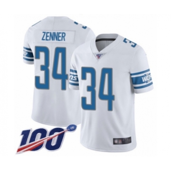 Men's Detroit Lions #34 Zach Zenner White Vapor Untouchable Limited Player 100th Season Football Jersey