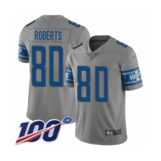 Men's Detroit Lions #80 Michael Roberts Limited Gray Inverted Legend 100th Season Football Jersey