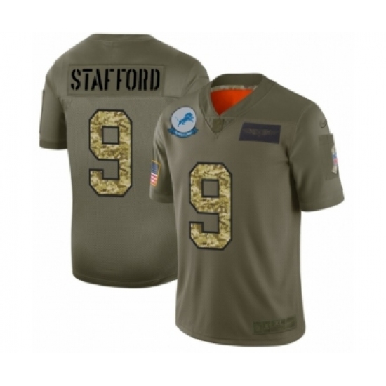 >Men's Detroit Lions #9 Matthew Stafford 2019 Olive Camo Salute to Service Limited Jersey