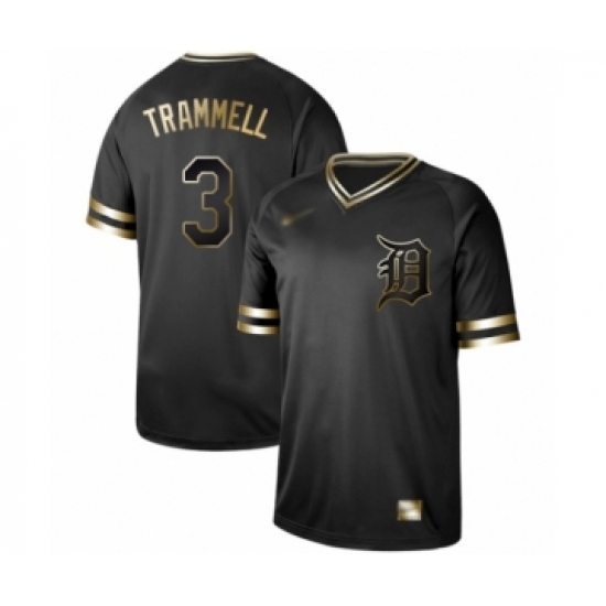 >Men's Detroit Tigers #3 Alan Trammell Authentic Black Gold Fashion Baseball Jersey