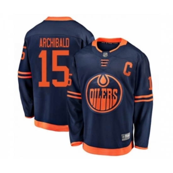 >Men's Edmonton Oilers #15 Josh Archibald Authentic Navy Blue Alternate Fanatics Branded Breakaway Hockey Jersey